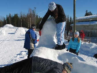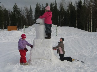 In the Vanttauskoski village the school children from "Yläkemijoen koulu" planned and constructed (with a little help from the adults) a playland out of snow. The playland was used during the breaks in schooldays and in the skiing competions of the school and local sports club, Viirin Viri. It was also used at the evenings and weekends when children were playing on their own. The Playland supported the change for children to do sports and planing of the constructions and also realising them, was very good practice for sculpture skills.