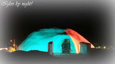 Igloo by night at the Vindel River bank in Sorsele!