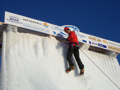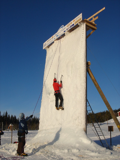Towards new hights... The people from the Mountain Guide College in Storuman are testing the climbing-wall to make sure that everything is allright!
